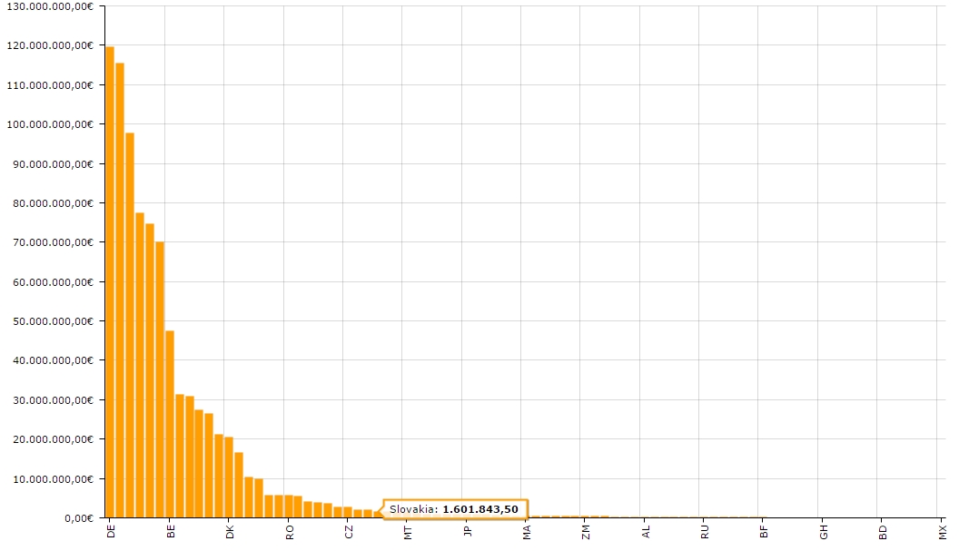 Zoznam krajín podľa získaných financií. Slovenské organizácie získali 1,6 mil. eur: