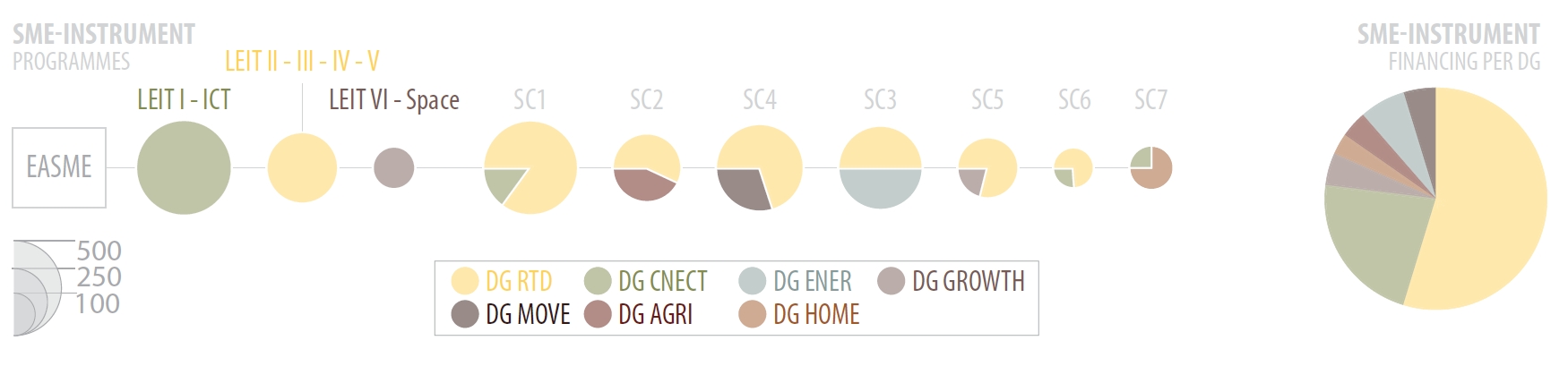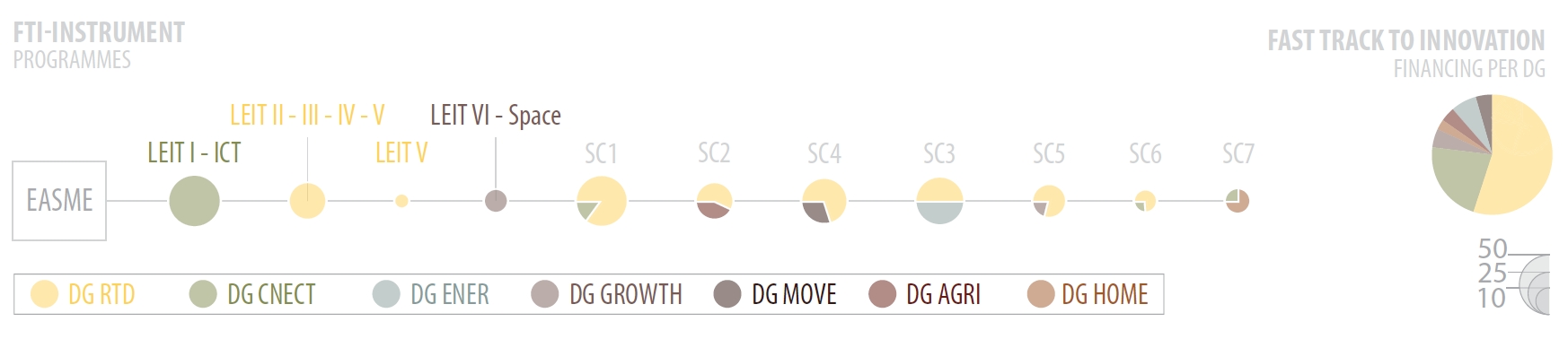 Rozpočty pre iniciatívy na uvedenie inovatívnych produktov na trh – SME Instrument (pre jednotlivé MSP) a Fast Track to Innovation (pre partnerstvá firiem s možnou účasťou výskumných hráčov) sú, vzhľadom na obrovské sumy, zložené z príspevkov jednotlivých generálnych riaditeľstiev Európskej komisie a rozdelené podľa tematických priorít programu.