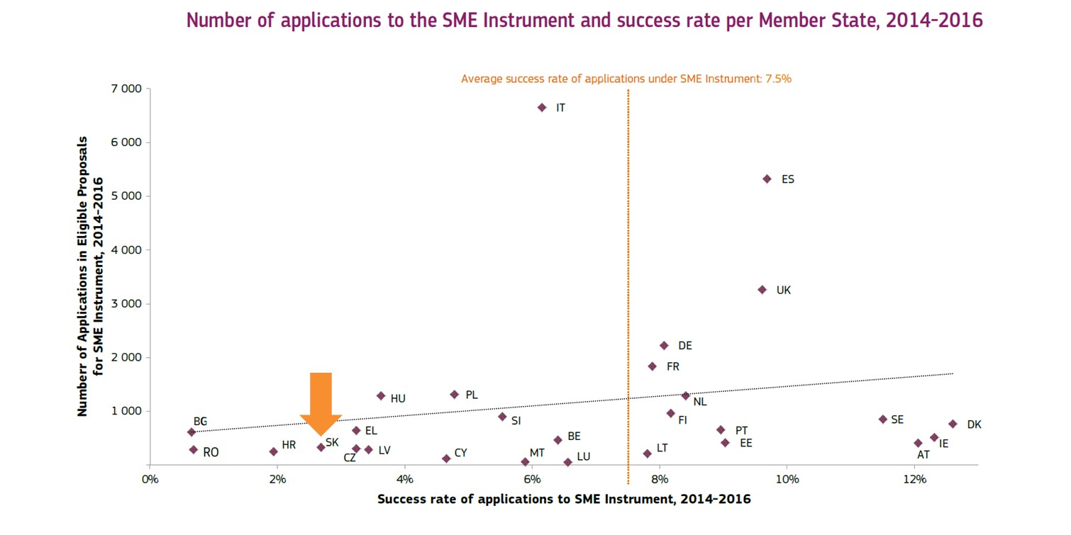- v aktivite Slovenska v počte podaných návrhov na počet výskumných pracovníkov sme na 24. mieste v EÚ