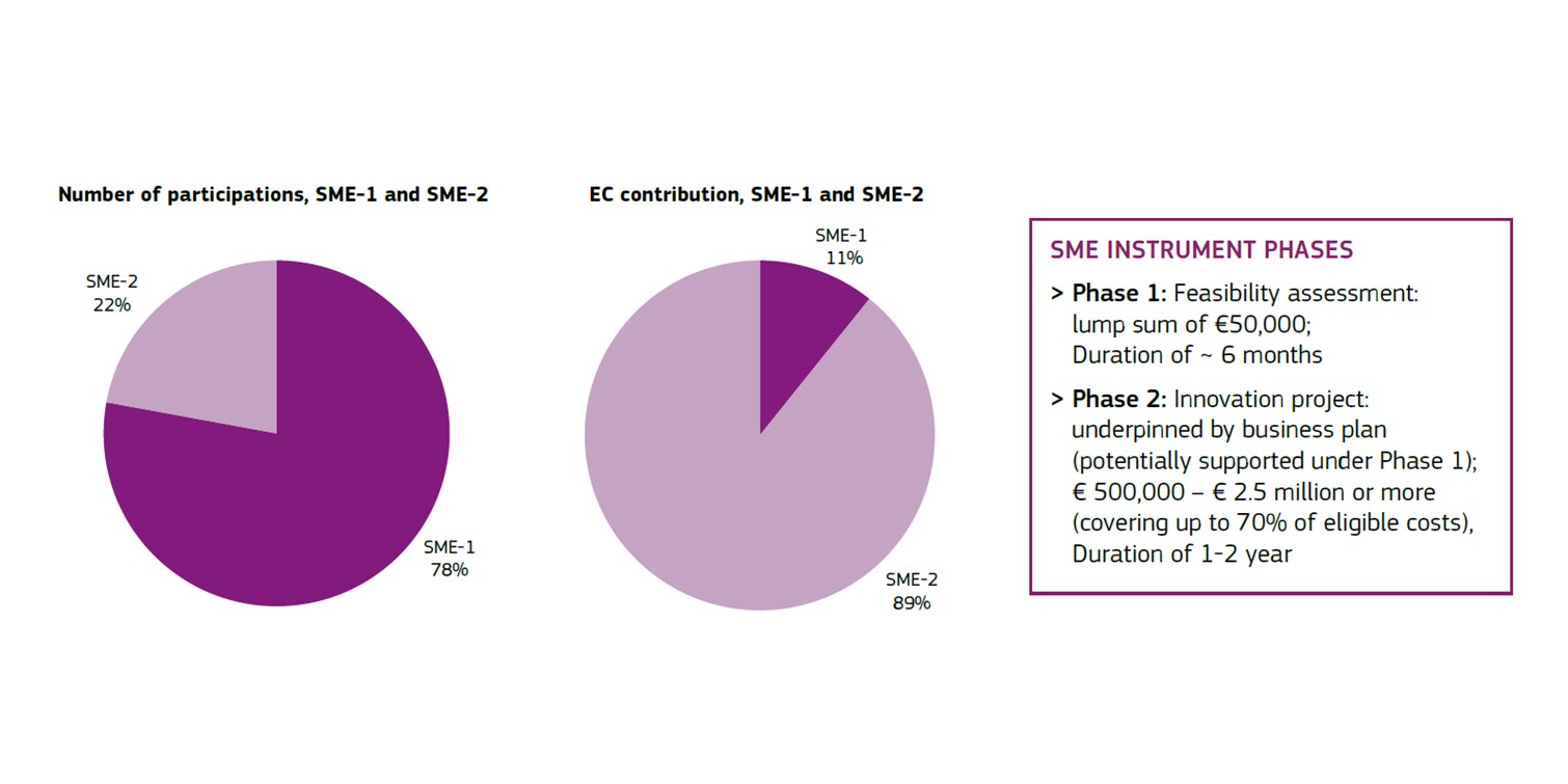 22. Počet účastí a rozdelený príspevok EÚ v SME Instrument podľa jednotlivých fáz: