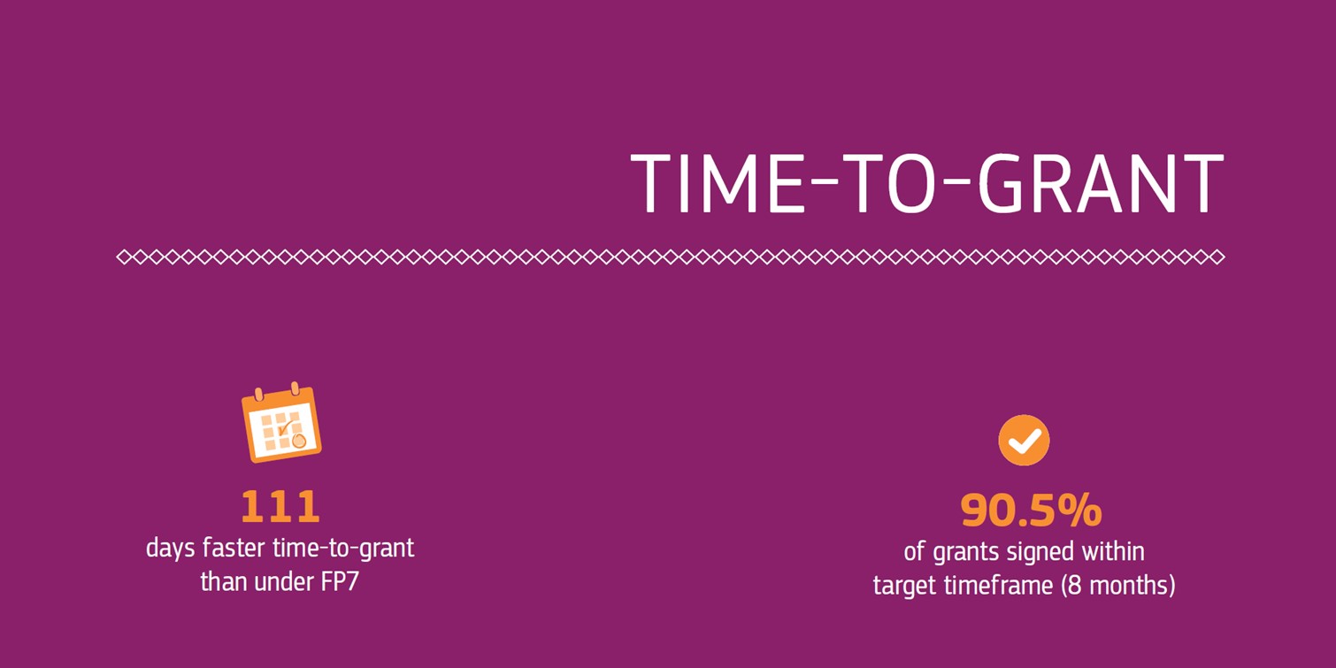 - priemerný čas na prípravu a podpis zmluvy sa skrátil na 192 dní (v porovnaní s 303 dňami v FP7)