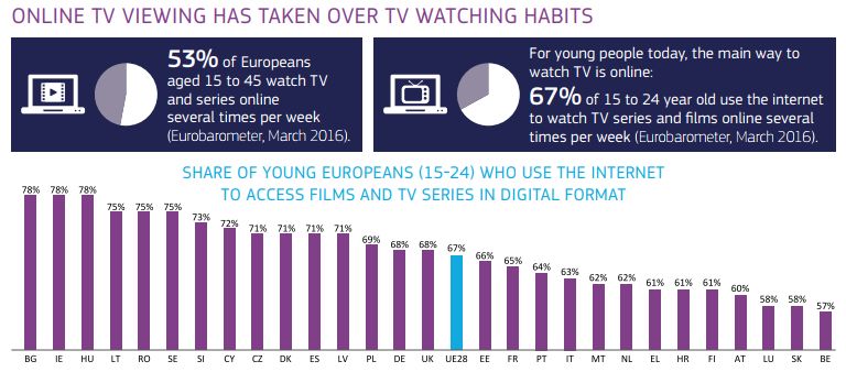 Prechod na online vysielanie má v aj v EÚ stúpajúci trend. Dôvodom je flexibilta, dostupnosť, no tiež fakt, že až 20 miliónov Európanov žije v inej krajine EÚ ako v tej, kde sa narodili.