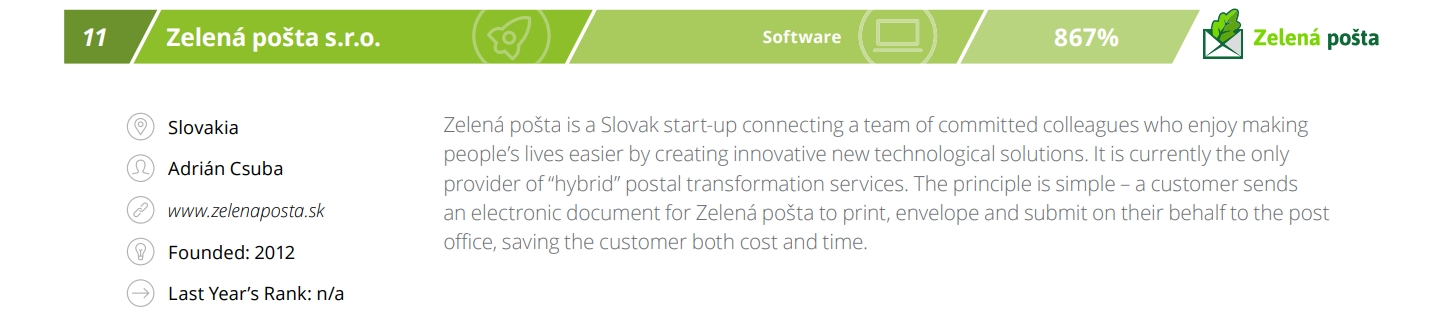 - Zelená pošta s. r. o. (11), rast: 867 %