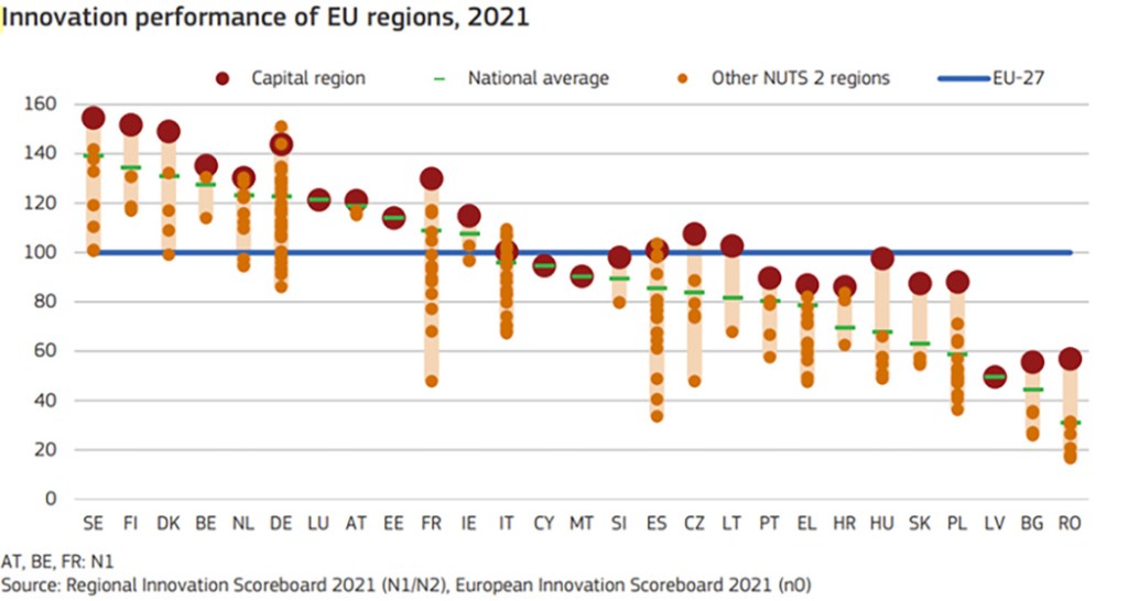 Je to spôsobené nielen nedostatkom investícií do výskumu a vývoja, ale aj nedostatkami v regionálnych inovačných ekosystémoch. Lepšie šírenie inovácií na národnej a regionálnej úrovni môže pomôcť menej rozvinutým a prechodným regiónom dobehnúť zaostalé. Stratégie inteligentnej špecializácie, ktoré boli zavedené v politike súdržnosti na roky 2014 – 2020, môžu pomôcť vyriešiť tento rozdiel, ale budú sa musieť viac zamerať na regionálny potenciál.