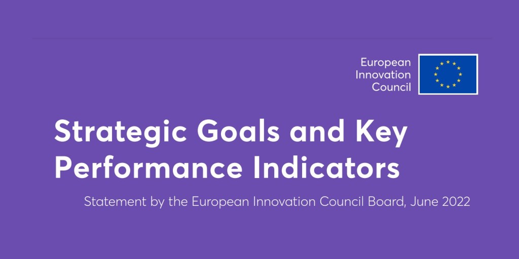 Správna rada Európskej rady pre inovácie (EIC) v júni 2022 navrhla šesť strategických cieľov so súvisiacimi kľúčovými ukazovateľmi výkonnosti (KPIs) s cieľom poskytnúť jasné smerovanie, sledovať pokrok a usmerňovať vykonávanie a prípadné nové opatrenia. Východiskové hodnoty a pokrok budú zahrnuté do výročných správach o vplyve EIC.