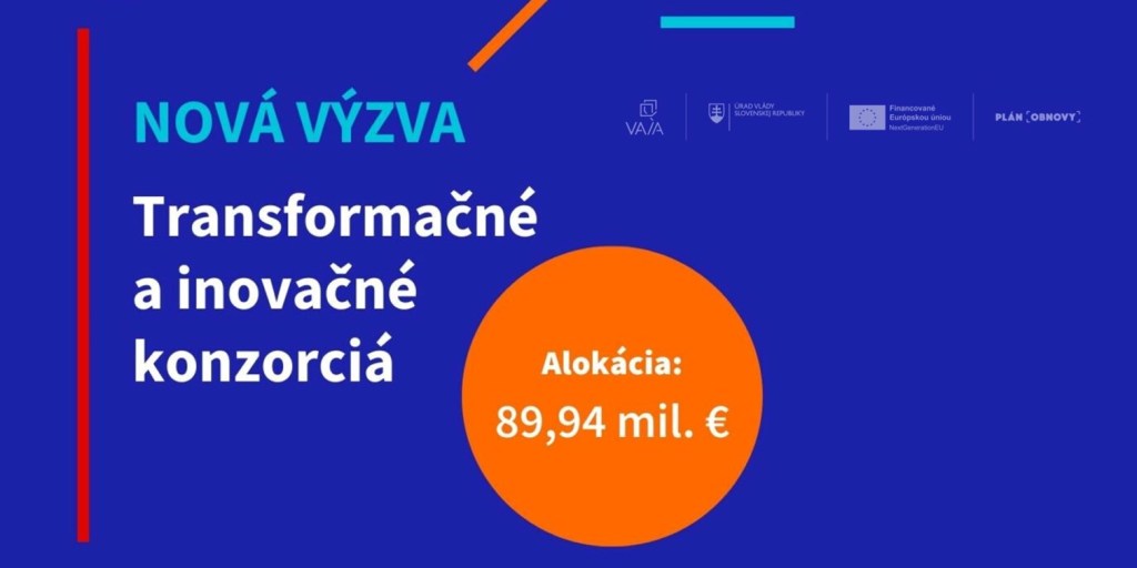 Výskumná a inovačná autorita Úradu vlády SR (VAIA) vyhlásila najväčšiu výzvu na podporu výskumu a inovácií z prostriedkov Plánu obnovy: Transformačné a inovačné konzorciá (TIK) v celkovom objeme 89,94 mil. eur. Webinár k výzve sa bude konať 4.7.2023 od 10:00.