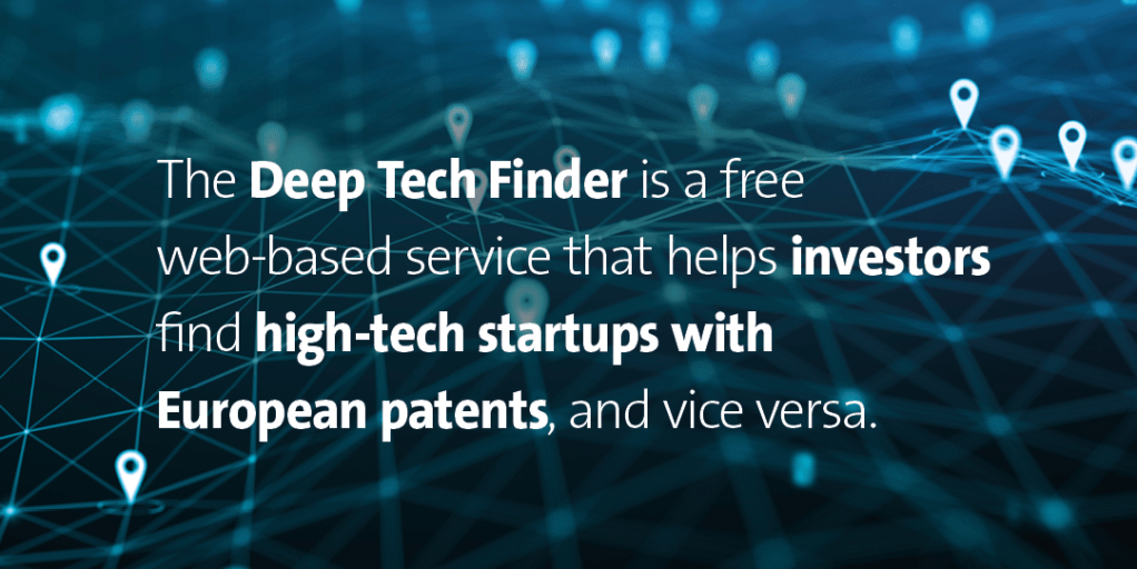 Vyhľadávač Deep Tech Finder umožňuje ďalším spoločnostiam a výskumníkom pôsobiacim v oblasti deep tech, ako aj investorom, vyhľadávať európske startupy, ktoré podali patentové prihlášky v úrade EPO, upriamuje sa na podniky, ktoré majú potenciál uviesť nové technológie na trh v európskom meradle.