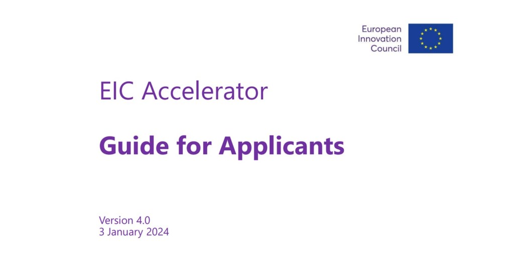 Začiatkom januára publikovala Európska komisia aj novú príručku pre predkladateľov návrhov v schéme EIC Accelerator, v ktorej upresňuje všetky nové zmeny, ktoré vstúpili do platnosti od začiatku roku 2024. Prečítajte tiež si súhrn zmien v EIC od roku 2024.