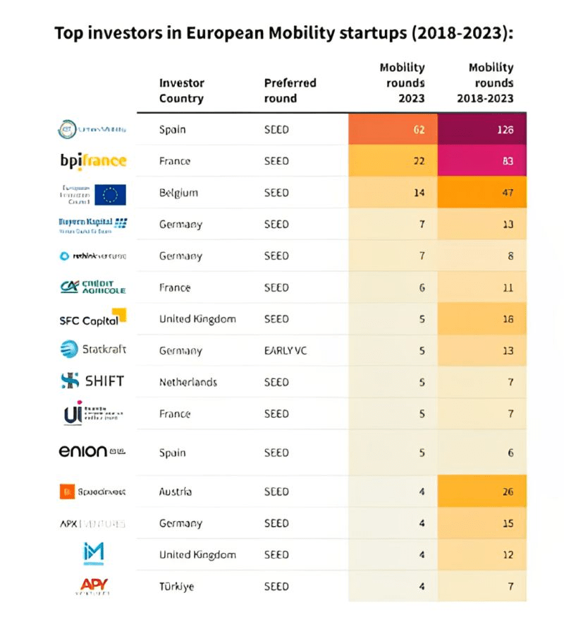EIT Urban Mobility sa stal lídrom ako najaktívnejší investor do startupov v oblasti mobility v Európe. EIC fond je na treťom mieste.