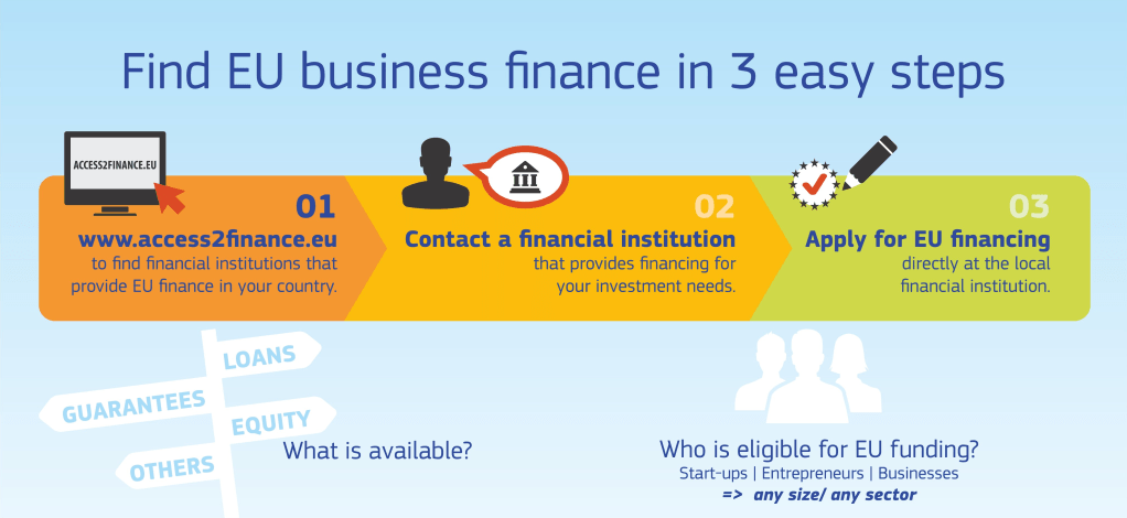 EÚ financovanie je dostupné pre všetky typy spoločností bez ohľadu na ich veľkosť či sektor pôsobenia. Ponuka financovania je široká a zahŕňa úvery, mikrofinancovanie a rizikový kapitál. Európska únia každoročne podporuje viac ako 200 000 podnikov. Okrem toho EÚ poskytuje podporu podnikom aj prostredníctvom grantov a zmlúv.